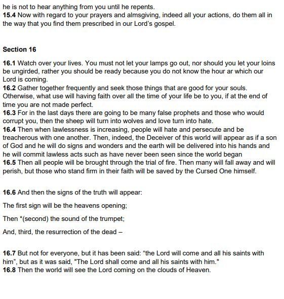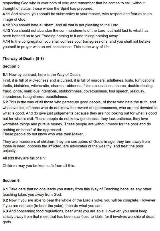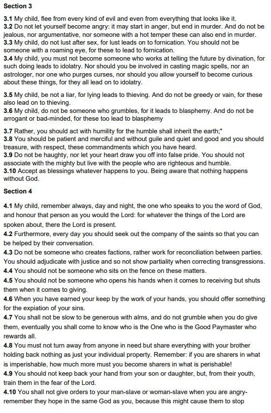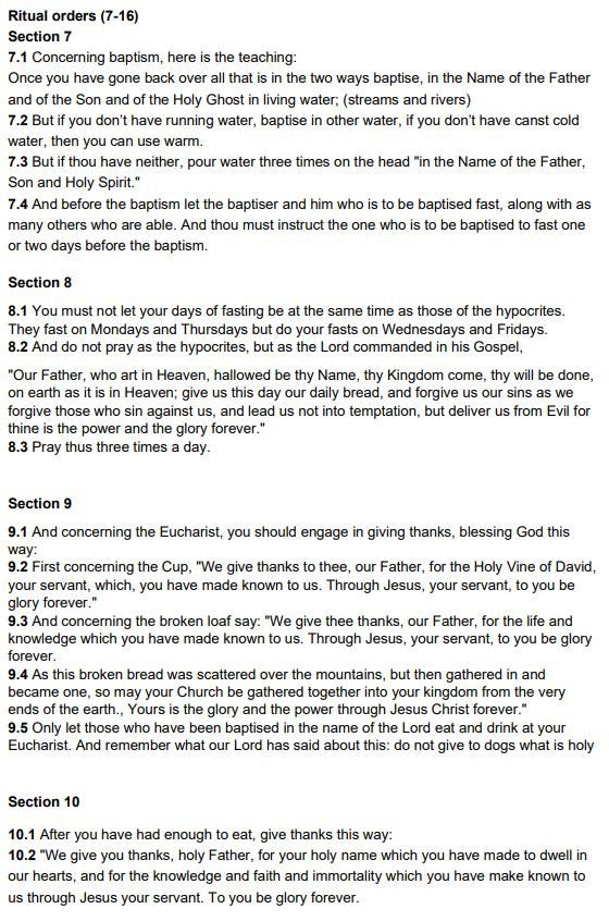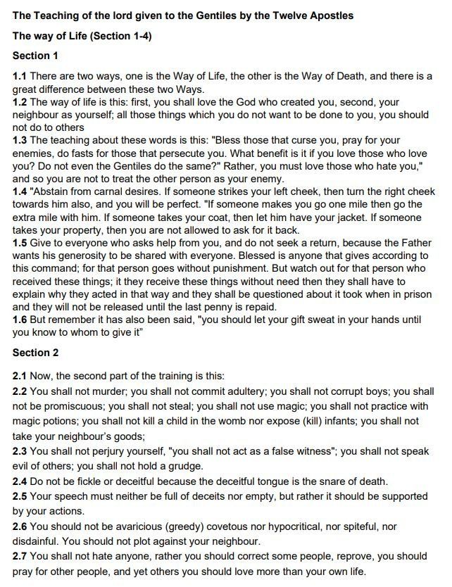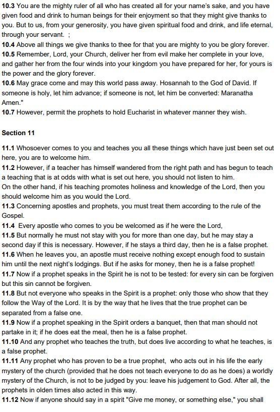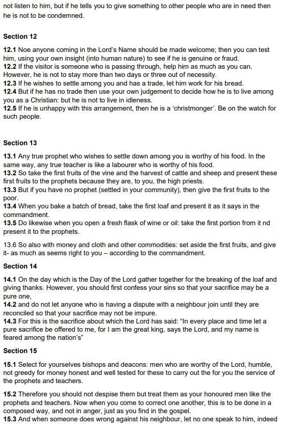 I’ve included a translation of the Didache below so that you can read it for yourselves (it’s not long, and as far as I can tell, it's consistent with the New Testament) As a taster here are some of my favourite lines: